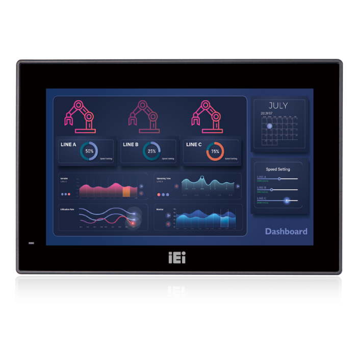 7" 500cd/m2 1024x600 Panel PC with Intel® Celeron® Processor N3350 (6W) on-board Processor , on-baord POE at, 1*4GB DDR3L , 802.11a/b/g/n/ac WiFi module, PCAP touch,R10