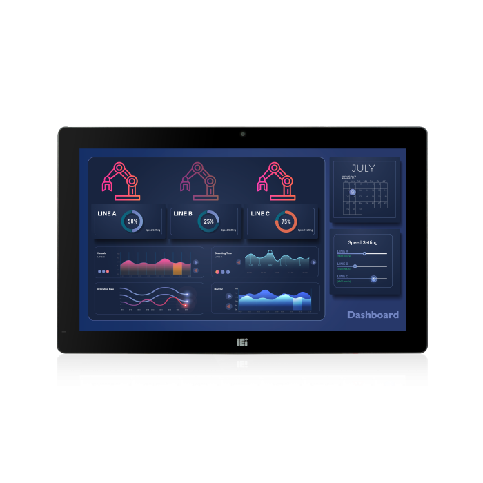 Wide 18.5” 250 cd/m² 1366x768 Panel PC with with Intel® Celeron® Processor J3455 (10W) on-board Processor (Apollo lake), 1*4GB DDR4 RAM, 802.11a/b/g/n/ac WiFi module, PCAP touch, 2M camera, microphone,R10