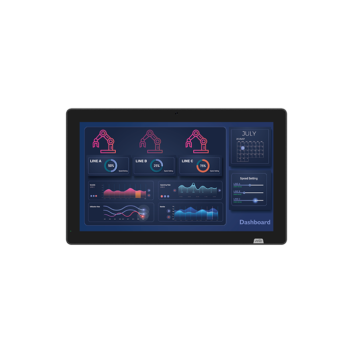 Wide 21.5" 350cd/m² 1920x1080 Panel PC with 12th Gen. Intel Core ion-board processor, PCAP touch, 2M camera, microphone