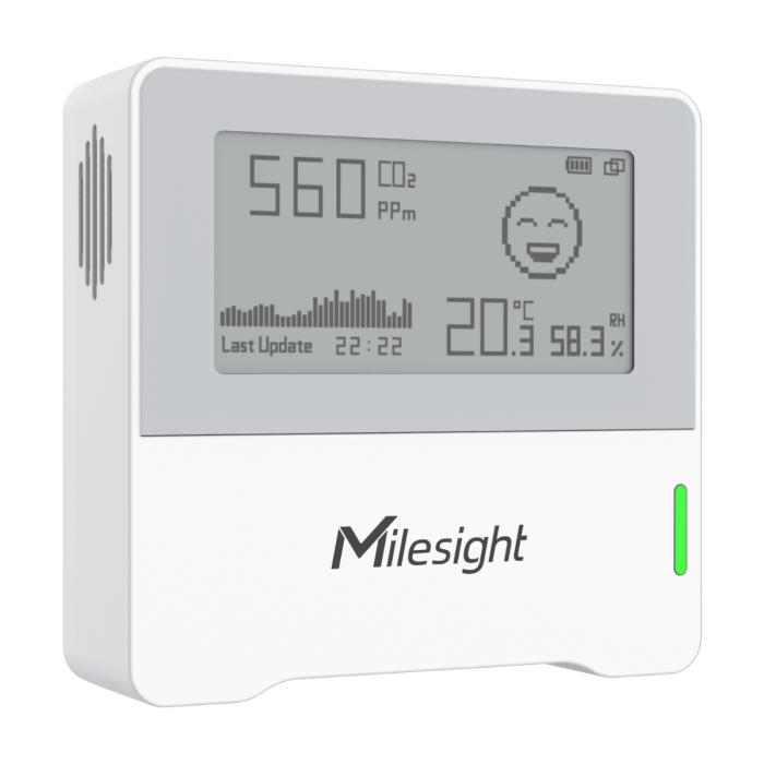 The AM103 is a small indoor environmental monitoring sensor that measures temperature, humidity, and CO2. This information will be displayed on an E-ink screen in real-time, allowing for the quantification of the indoor environment and comfort. The AM103 is commonly used in offices, retail, classrooms, and hospitals, among other places.