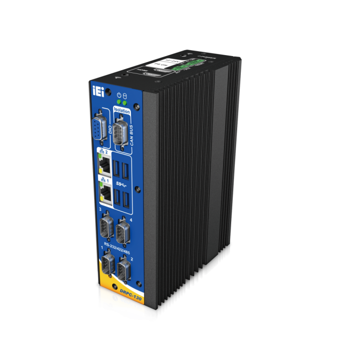 The DRPC-130-AL accepts a wide range of DC power input (12 V ~ 24 V), allowing it to be powered anywhere. Four USB 3.0, two GbE, four RS-232/422/485, one 8-bit digital I/O, two HDMI and isolated CAN bus provide rich I/O options for various applications.