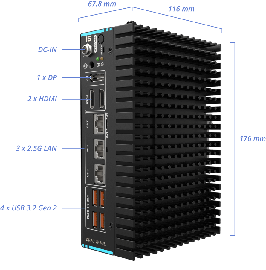 Fanless System with Reliable Thermal Design The DRPC-W-TGL is built with multiple wireless connectivity options necessary for remote and mobile deployments, which include Bluetooth, WiFi and 4G/LTE that enable connections with a variety of industrial IoT devices.