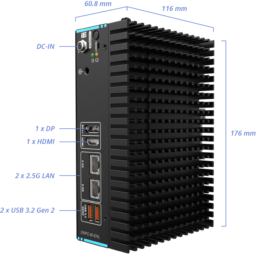 Based on IEI’s industrial-grade 3.5” embedded systems, the DRPC -W series are compact without sacrificing the flexibility in I/O expansion that is often required for IoT scalable sensor connectivity. Moreover, the front-side I/O design is easy for in-cabinet installation.