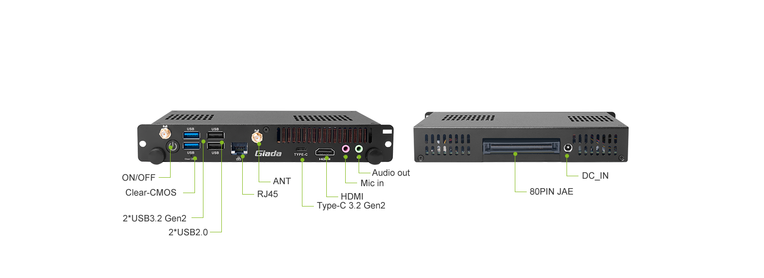 | Description | Intel® 13th Gen. Raptor Lake Processors High Computing Performance The Giada PC613, equipped with Intel® Raptor Lake Core i3-1315U/i5-1335U processors, ushers in a new era of both performance and efficiency. These processors seamlessly integrate high-performance cores with efficient ones, collaborating to optimize power consumption without sacrificing processing power. ![]() ![]() Supporting 8K Display The PC613 offers support for a maximum 8K display through its 80-pin JAE connector. Additionally, on the front panel, there is an HDMI 2.0a port available for connecting a secondary 4K@60Hz display. This makes it an optimal selection for large-format ![]() ![]() Intel® vPro Technology Intel® Hardware Shield delivers integrated hardware-based PC protection, which includes below-the-OS security, application and data protection, and advanced threat detection. ![]() ![]() I/O Port Configuration ![]() ![]() |