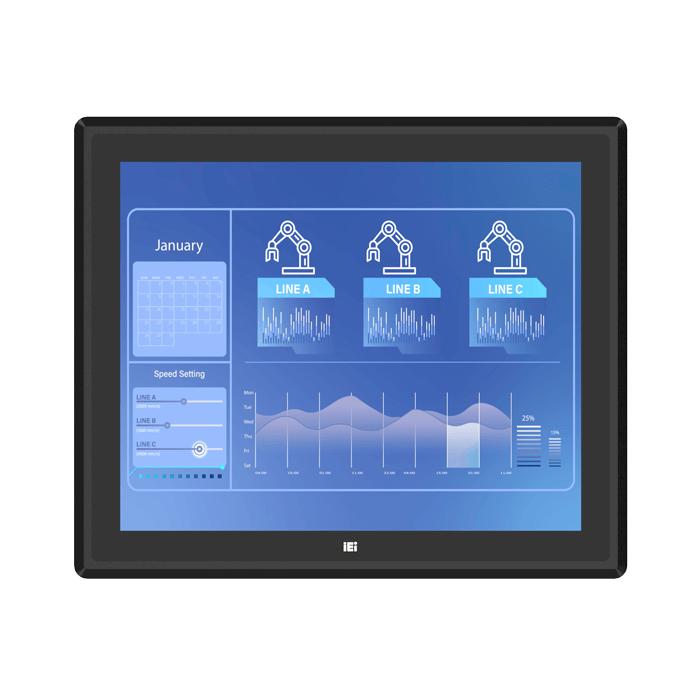 The PPC2-C-EHL series heavy industrial panel PC is built to withstand harsh work environments of any size. It has no fans, a wide operating temperature range of -10°C to 60°C, and vibration-resistant features such as 8GB on-board memory and NVMe storage. The Intel® Celeron® J6412 CPU was chosen as the panel PC's heart to deliver excellent performance while consuming very little power. The panel PC's equipped 10-point P-CAP touchscreen with anti-glare/anti-UV coating and scratch resistance is IP65-rated and supports gloved/wet hand operation, making it an ideal solution for Industrial Internet of Things (IIoT) applications.