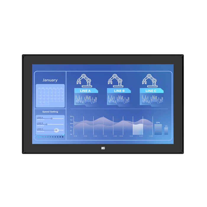 The PPC2-C-EHL series heavy industrial panel PC is built to withstand harsh work environments of any size. It has no fans, a wide operating temperature range of -10°C to 60°C, and vibration-resistant features such as 8GB on-board memory and NVMe storage. The Intel® Celeron® J6412 CPU was chosen as the panel PC's heart to deliver excellent performance while consuming very little power. The panel PC's equipped 10-point P-CAP touchscreen with anti-glare/anti-UV coating and scratch resistance is IP65-rated and supports gloved/wet hand operation, making it an ideal solution for Industrial Internet of Things (IIoT) applications.