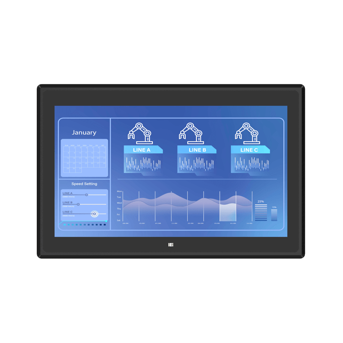 The PPC2-C-EHL series heavy industrial panel PC is built to withstand harsh work environments of any size. It has no fans, a wide operating temperature range of -10°C to 60°C, and vibration-resistant features such as 8GB on-board memory and NVMe storage. The Intel® Celeron® J6412 CPU was chosen as the panel PC's heart to deliver excellent performance while consuming very little power. The panel PC's equipped 10-point P-CAP touchscreen with anti-glare/anti-UV coating and scratch resistance is IP65-rated and supports gloved/wet hand operation, making it an ideal solution for Industrial Internet of Things (IIoT) applications.